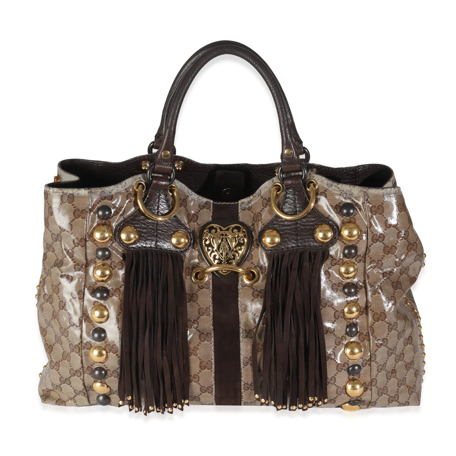 Beige GG Crystal Monogram Medium Babouska Fringe Tote
