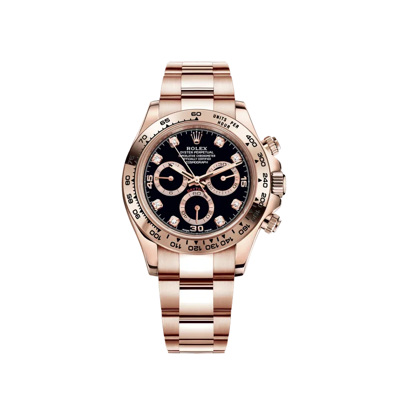 With its tachymetric scale, its three counters and its pushers, the Cosmograph Daytona was designed to be the ultimate timing tool for endurance racing drivers. The bezel features a tachymetric scale to read average speed over a given distance based on elapsed time. This scale offers optimal legibility, making the Cosmograph Daytona the ideal instrument for measuring speeds up to 400 units per hour, expressed in kilometres or miles.