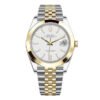 THIS OYSTER PERPETUAL DATEJUST 41 IN OYSTERSTEEL AND YELLOW GOLD FEATURES A WHITE DIAL AND A JUBILEE BRACELET.