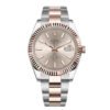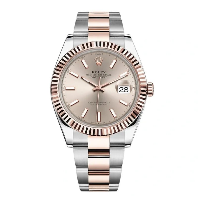 THIS OYSTER PERPETUAL DATEJUST 41 IN OYSTERSTEEL AND EVEROSE GOLD FEATURES A SUNDUST DIAL AND AN OYSTER BRACELET.