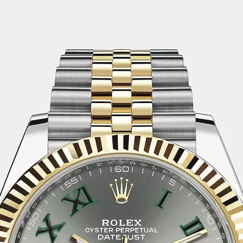 THIS OYSTER PERPETUAL DATEJUST 41 IN OYSTERSTEEL AND YELLOW GOLD FEATURES A SLATE DIAL AND A JUBILEE BRACELET.