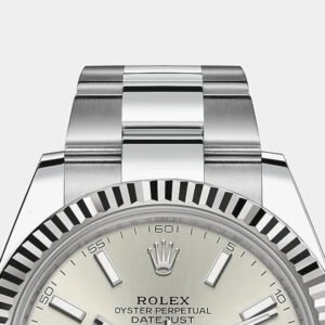 THIS OYSTER PERPETUAL DATEJUST 41 IN OYSTERSTEEL AND WHITE GOLD FEATURES A SILVER DIAL AND AN OYSTER BRACELET.