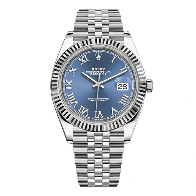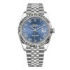 THIS OYSTER PERPETUAL DATEJUST 41 IN OYSTERSTEEL AND WHITE GOLD FEATURES AN AZZURRO-BLUE DIAL AND A JUBILEE BRACELET.