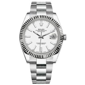 The light reflections on the case sides and lugs highlight the elegant profile of the 41 mm Oyster case, which is fitted with a fluted bezel. Aesthetically, the Datejust has spanned eras, while retaining the enduring codes that make it, notably in its traditional versions, one of the most recognized and recognizable of watches.