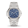 Perpetual calendar. Day, date, month, leap year and 24-hour indication by hands. Moon phases. Diameter: 27.5 mm. Height: 3.88 mm. Number of parts: 275. Bridges: 8. Jewels: 27. Power reserve: min. 38 hours, max. 48 hours. 22K gold off-center mini-rotor. Balance: Gyromax®. Vibrations/hour: 21 600 (3 Hz). Balance spring: Spiromax®. Hallmark: Patek Philippe Seal. Patent: CH 595 653.