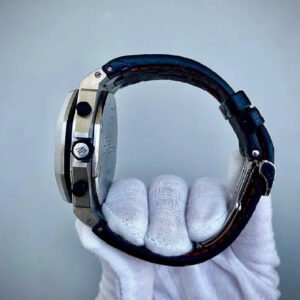 Audemars Piguet Royal Oak Offshore 26170ST.OO.D101CR.02 Mens Watch. 42mm stainless steel case. Stainless steel octagon shaped bezel. Silver Mega Tapisserie dial with steel hands and Arabic numeral hour markers. The date is displayed at 3 o’clock. Three black sub-dials. Small seconds hand at 12 o’clock. 30-minute counter at 9 o’clock. 12-hour counter at 6 o’clock. Black leather strap with stainless steel deployment buckle. Will fit up to a 7-inch wrist. Sapphire crystal. Stainless steel case back. Automatic self-winding movement. This watch comes with original Papers.