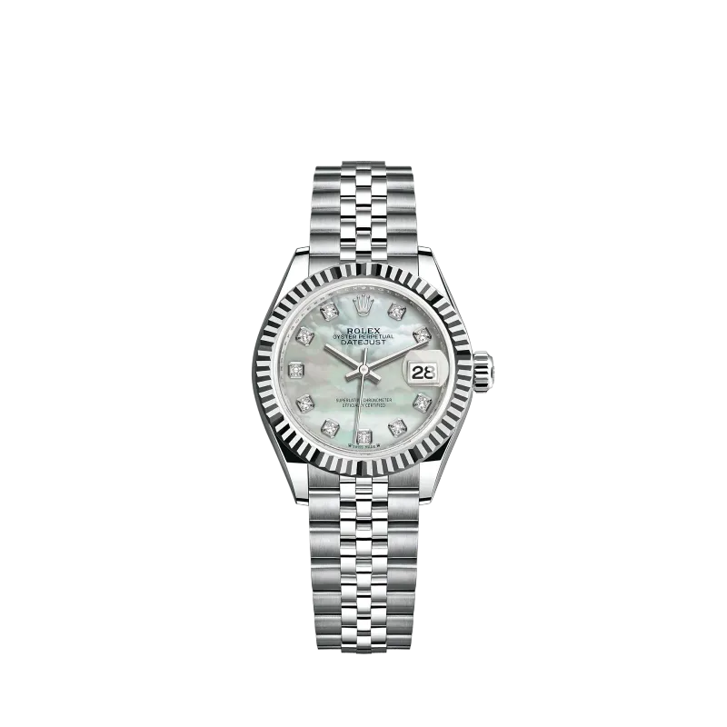 The light reflections on the case sides and lugs highlight the elegant profile of the 28 mm Oyster case, which is fitted with a fluted bezel. Rolex’s classic feminine watch, the Lady-Datejust is in the lineage of the Datejust, the emblematic model that has been a byword for style and accurate timekeeping.