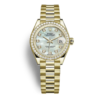 THIS OYSTER PERPETUAL LADY-DATEJUST IN 18 CT YELLOW GOLD FEATURES A WHITE MOTHER-OF-PEARL, DIAMOND-SET DIAL AND A PRESIDENT BRACELET.