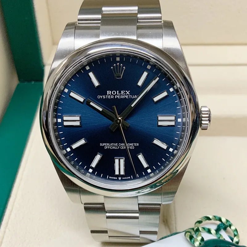 The Oyster bracelet is a perfect alchemy of form and function, aesthetics and technology. First introduced in the late 1930s, this particularly robust and comfortable metal bracelet with its broad, flat three-piece links remains the most universal bracelet in the Oyster collection. For the Oyster Perpetual models the Oyster bracelet is fitted with an Oysterclasp.