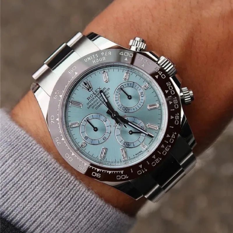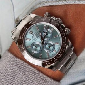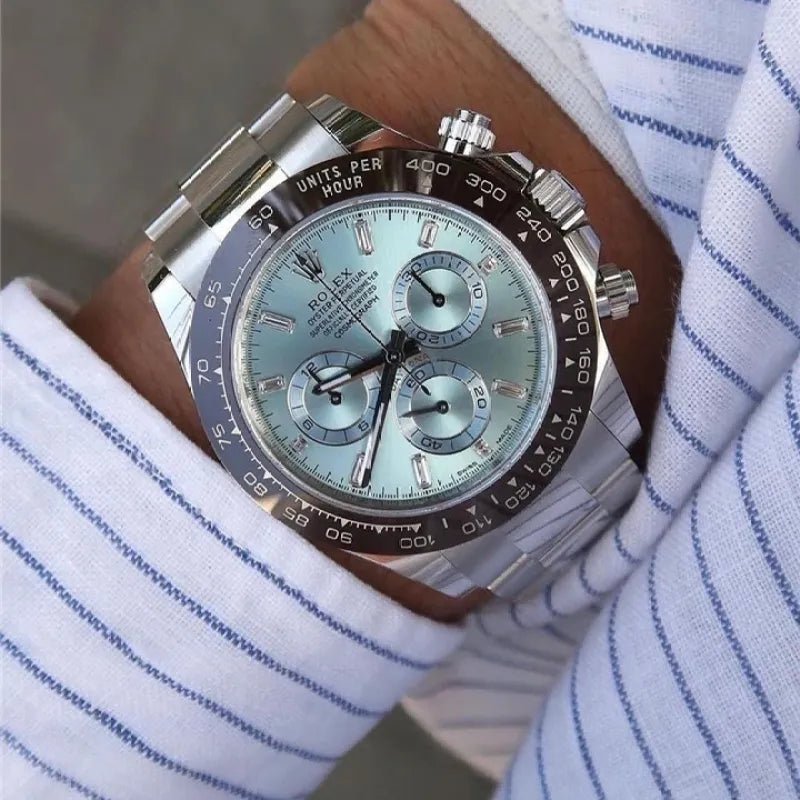 The ice-blue dial is the discreet and exclusive signature of a Rolex platinum watch. Rolex uses platinum, the noblest of metals, for the finest of watches.