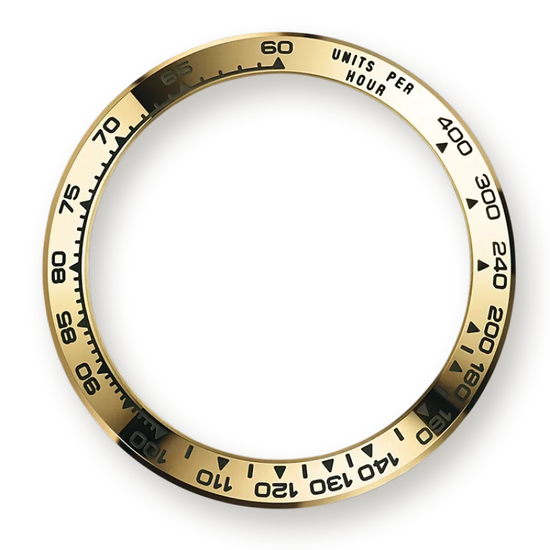 - Fixed, with engraved tachymetric scale, in yellow gold