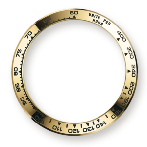 - Fixed, with engraved tachymetric scale, in 18 kt yellow gold