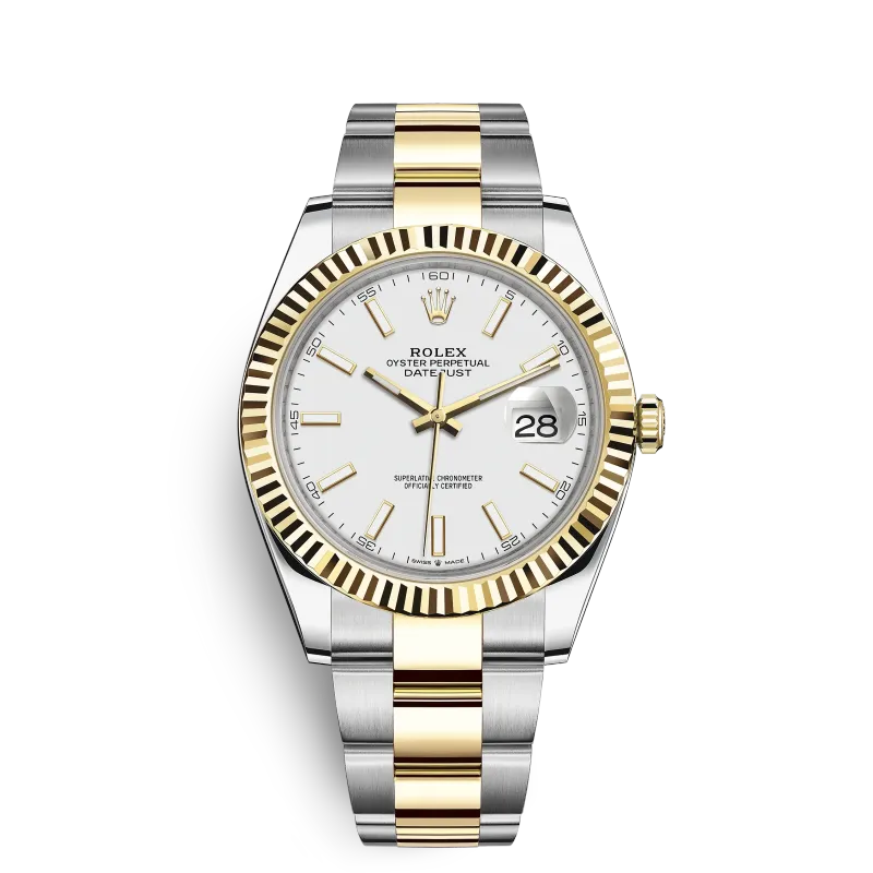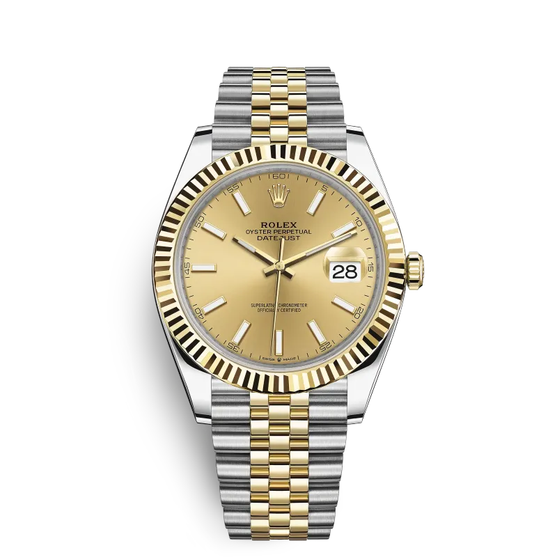 THIS OYSTER PERPETUAL DATEJUST 41 IN OYSTERSTEEL AND YELLOW GOLD FEATURES A CHAMPAGNE-COLOUR DIAL AND A JUBILEE BRACELET.