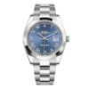 THIS OYSTER PERPETUAL DATEJUST 41 IN OYSTERSTEEL FEATURES AN AZZURRO-BLUE DIAL AND AN OYSTER BRACELET.