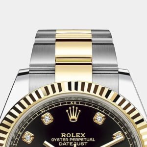 THIS OYSTER PERPETUAL DATEJUST 41 IN OYSTERSTEEL AND YELLOW GOLD FEATURES A BRIGHT BLACK, DIAMOND-SET DIAL AND AN OYSTER BRACELET.