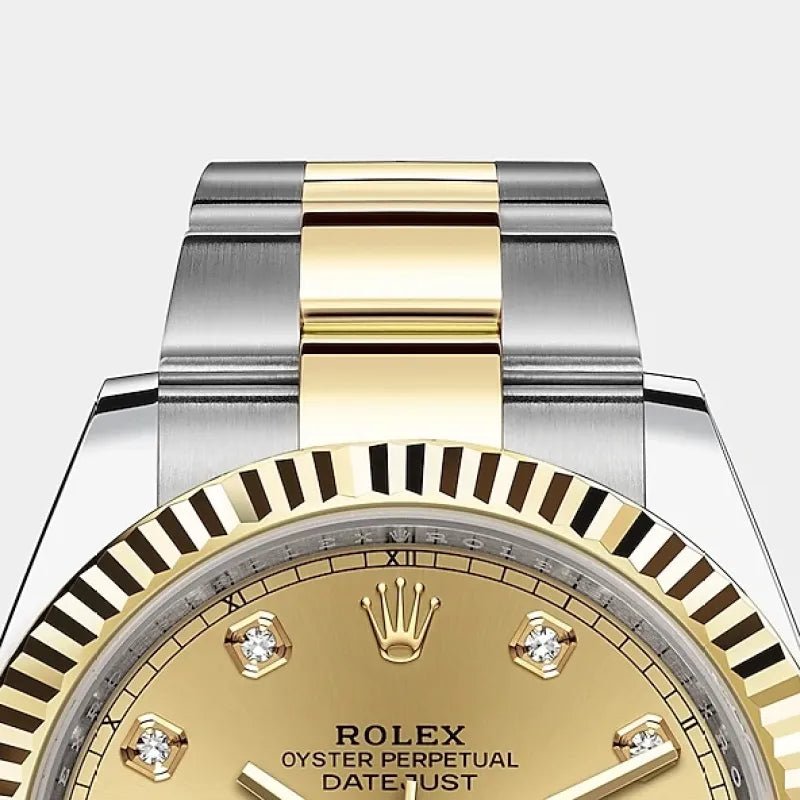THIS OYSTER PERPETUAL DATEJUST 41 IN OYSTERSTEEL AND YELLOW GOLD FEATURES A CHAMPAGNE COLOUR, DIAMOND-SET DIAL AND AN OYSTER BRACELET.