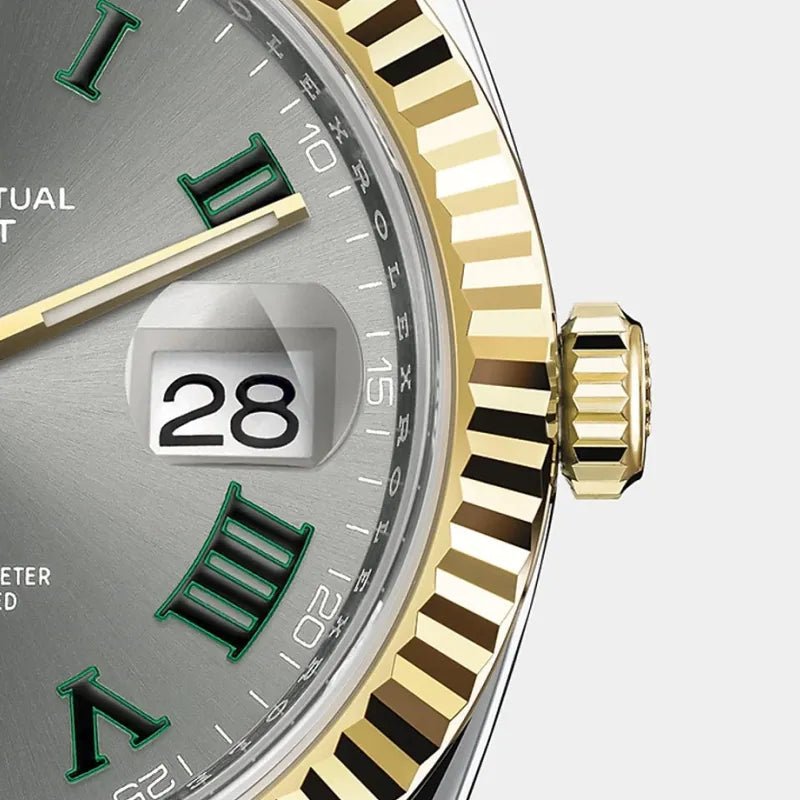 - Scratch-resistant sapphire, Cyclops lens over the date