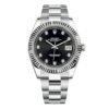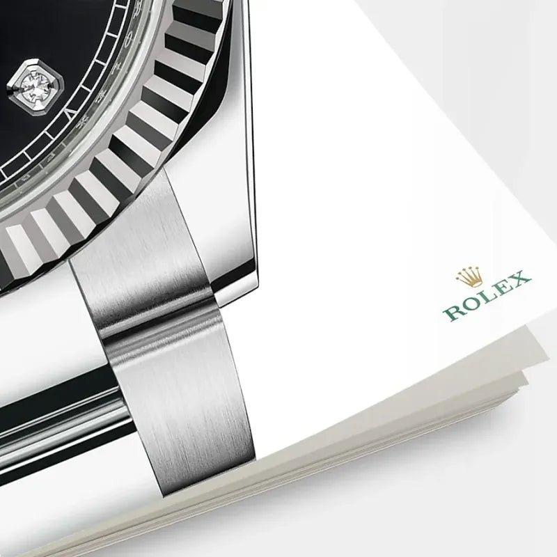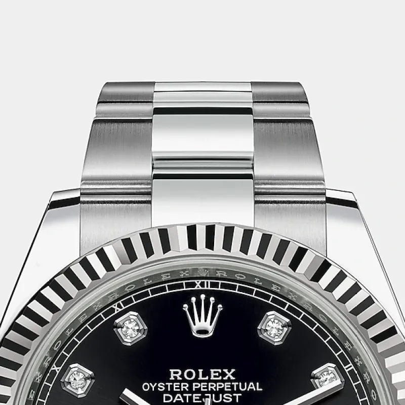 THIS OYSTER PERPETUAL DATEJUST 41 IN OYSTERSTEEL AND WHITE GOLD FEATURES A BRIGHT BLACK, DIAMOND-SET DIAL AND AN OYSTER BRACELET.